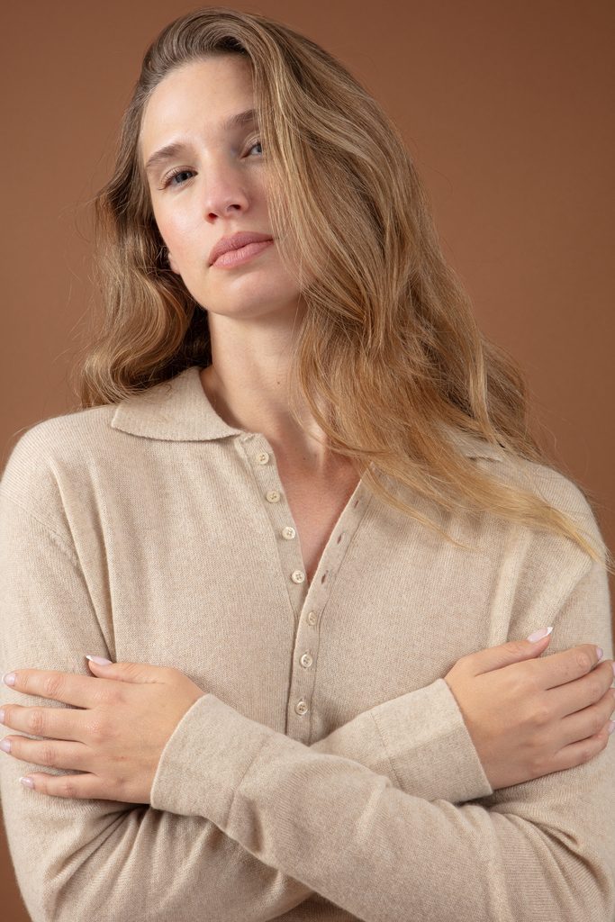 Elegant and fluid, the ROCE dress reinterprets the polo style with a feminine twist. Knitted in 2-ply 100% cashmere, gauge 12, it offers softness and a gently flared silhouette that enhances all body shapes.