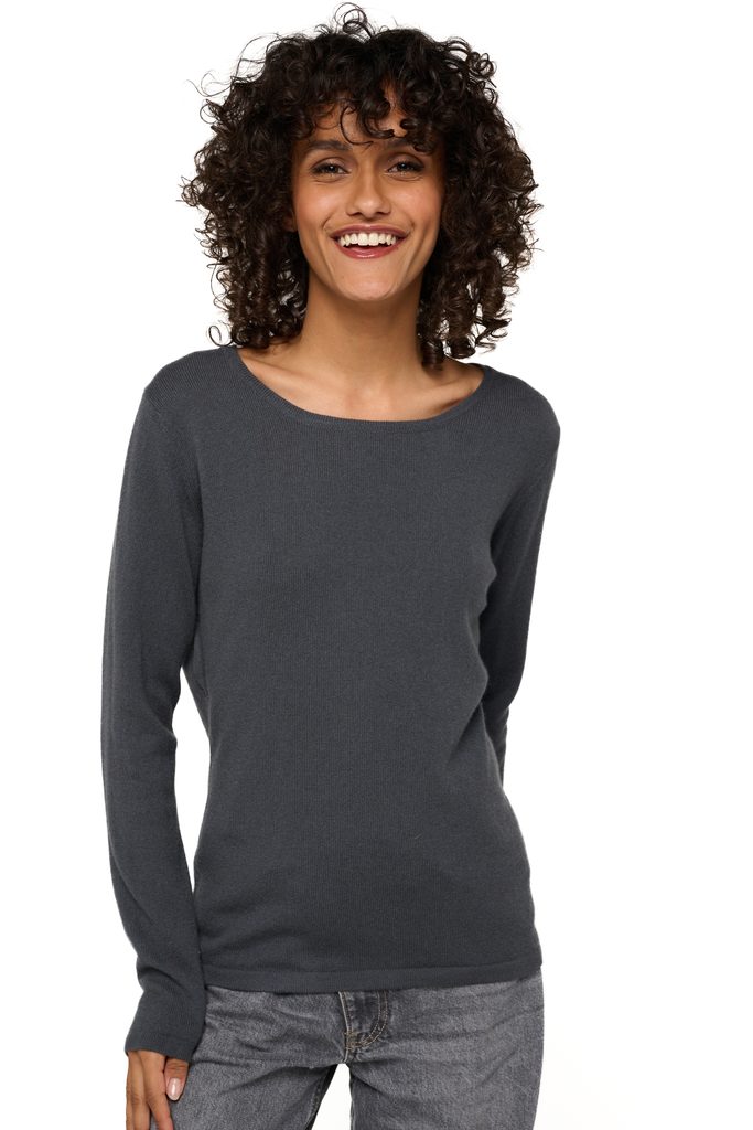 100% kašmir, 2 sloja. Nežen, lahek in obenem topel ženski pulover brezčasnega kroja z velikim okroglim izrezom. Eleganten model za elegantno žensko.